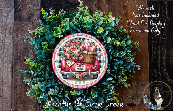 Be Mine Valentine Car Sign | Floral Luv Bug Decor | Lightweight Round Metal Wreath Sign | No Holes in Sign | Romantic Farmhouse Style