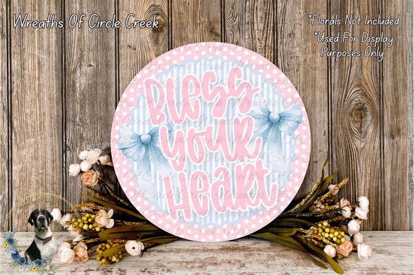 Bless Your Heart Pink Bow Aluminum Metal Wreath Sign (Lightweight, No Holes)