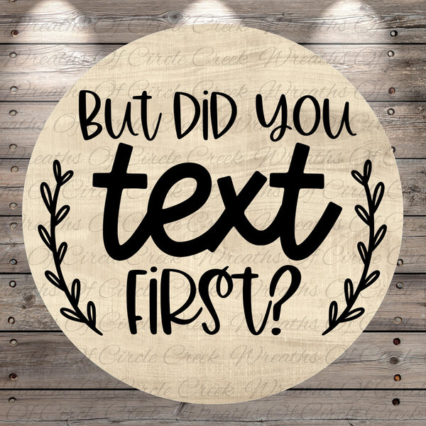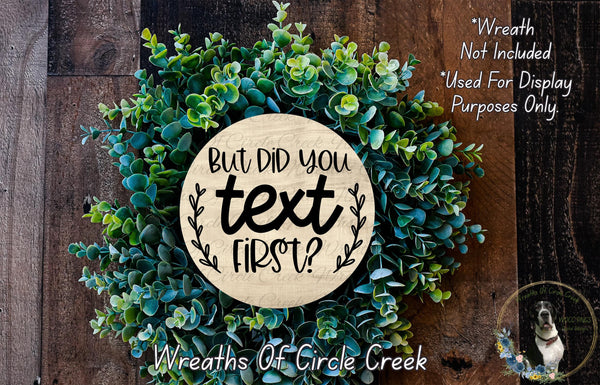 But Did You Text First Farmhouse Aluminum Metal Wreath Sign (Lightweight, No Holes)