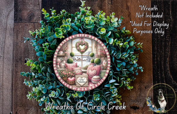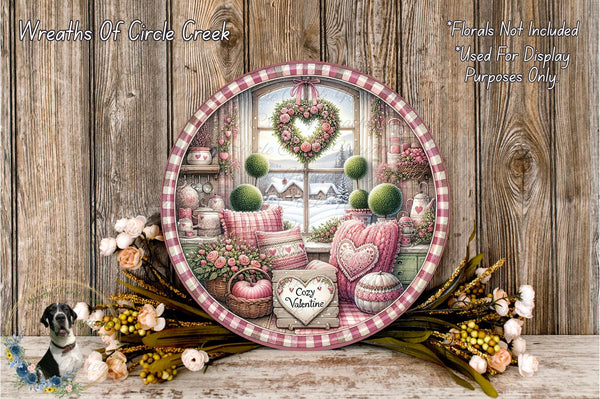 Cozy Valentine Sign | Winter Farmhouse Heart Decor | Lightweight Round Metal Wreath Sign | No Holes in Sign | Romantic Country Style