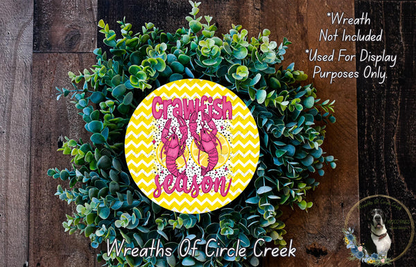 Crawfish Season | Lightweight Round Metal Wreath Sign | No Holes in Sign | Boil Party Decor