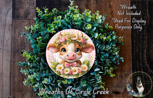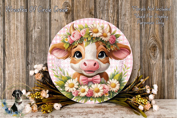 Floral Cow Spring Aluminum Metal Wreath Sign (Lightweight, No Holes)