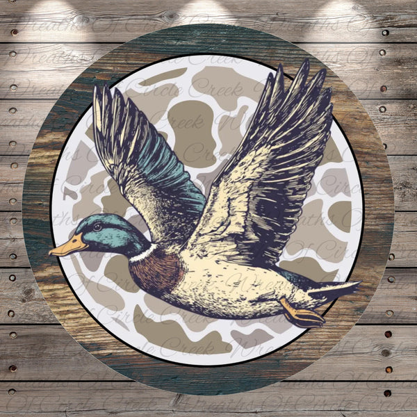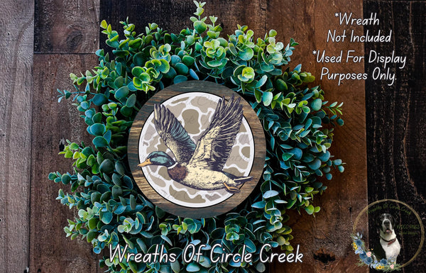 Flying Mallard Duck Rustic Hunting Cabin Aluminum Metal Wreath Sign (Lightweight, No Holes)