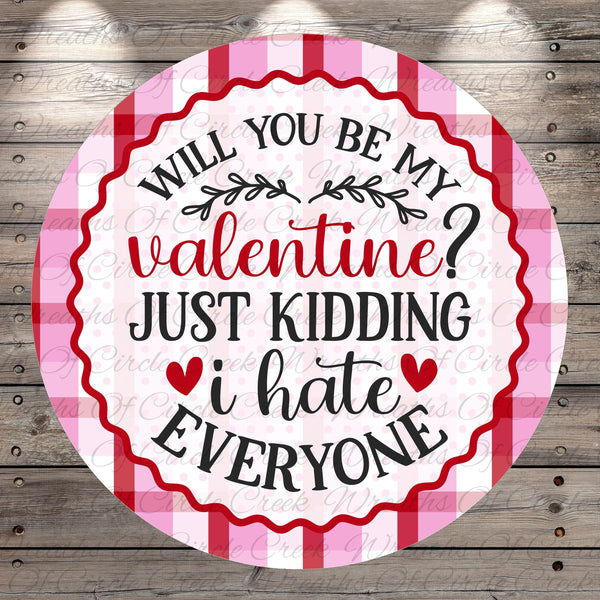 Funny Valentine Hate Everyone Aluminum Metal Wreath Sign (Lightweight, No Holes)