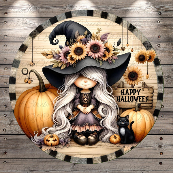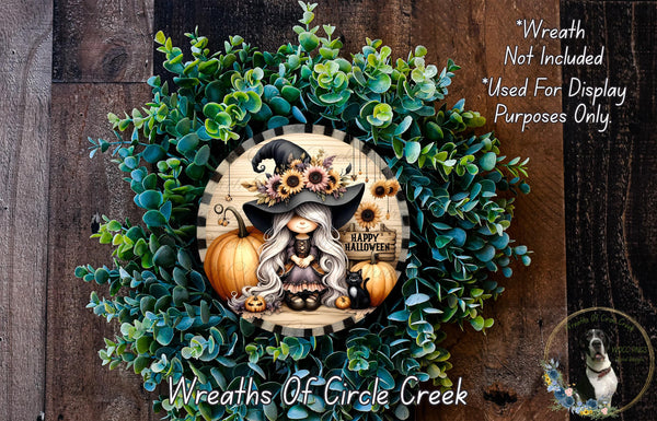 Girl Witch Halloween Wreath Sign Buffalo Check Farmhouse Fall Decor Aluminum Metal Wreath Sign (Lightweight, No Holes)