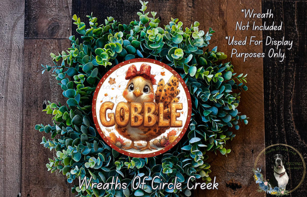 Gobble Turkey Sign | Cute Fall Farmhouse Decor | Lightweight Round Metal Wreath Sign | No Holes in Sign | Thanksgiving Door Sign