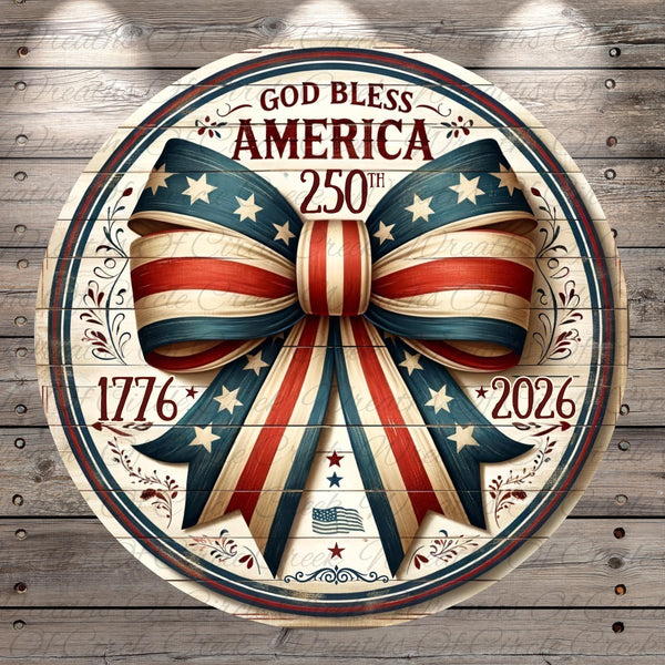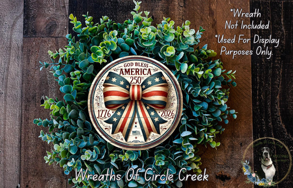 God Bless America 250 Patriotic Bow Aluminum Metal Wreath Sign (Lightweight, No Holes)