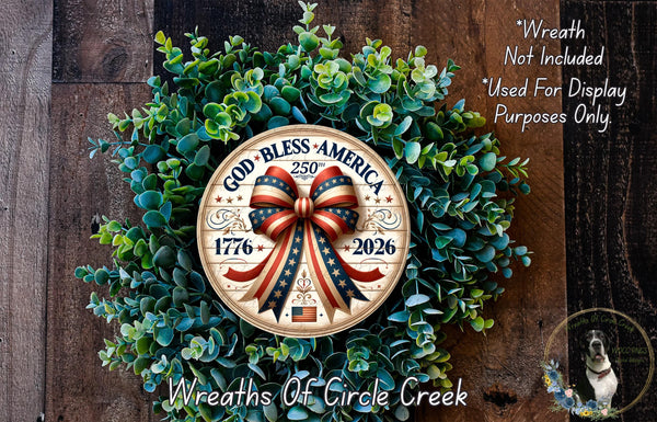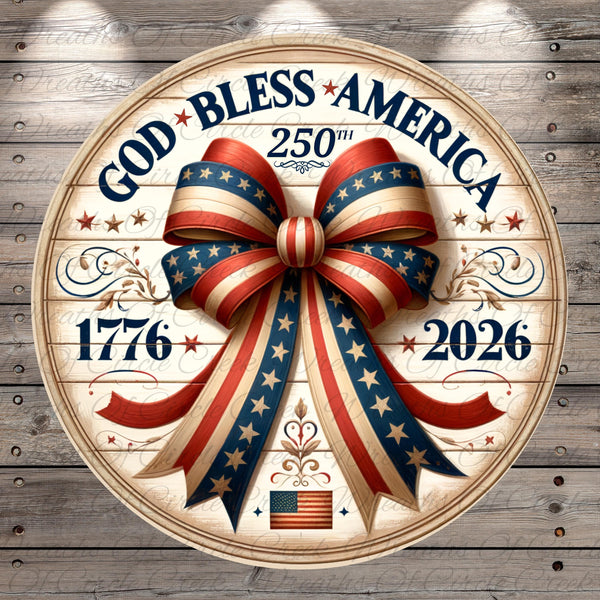 God Bless America 250 Vintage Patriotic Bow Aluminum Metal Wreath Sign (Lightweight, No Holes)