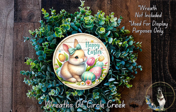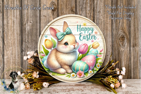Happy Easter Bunny Aluminum Metal Wreath Sign (Lightweight, No Holes)