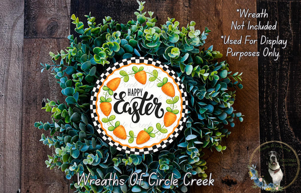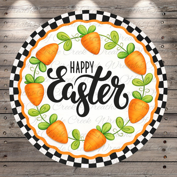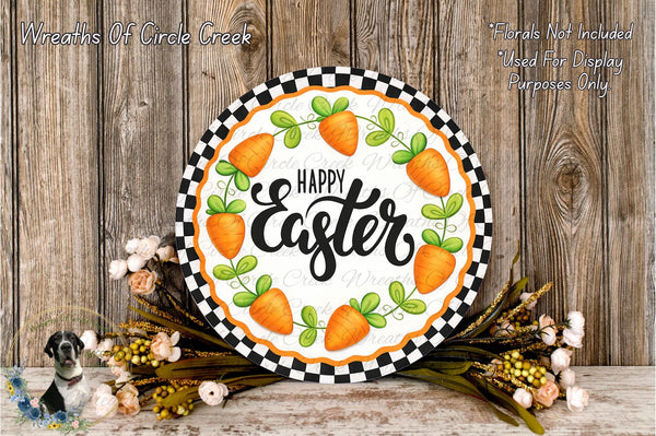 Happy Easter Carrot Black and White Wreath Aluminum Metal Wreath Sign (Lightweight, No Holes)