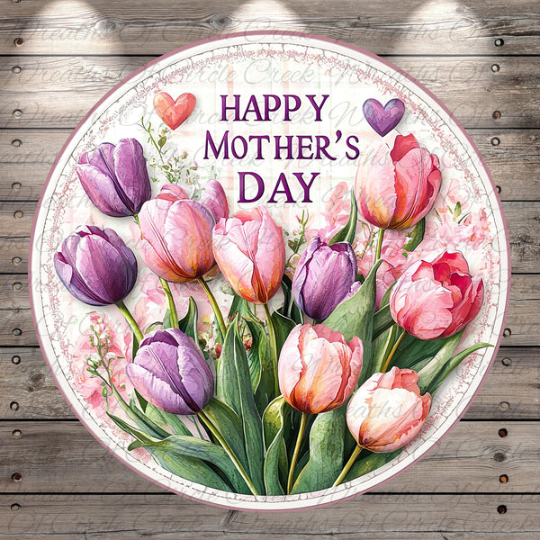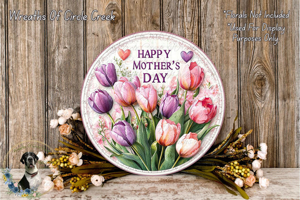 Happy Mother’s Day Tulip Bouquet Aluminum Metal Wreath Sign (Lightweight, No Holes)