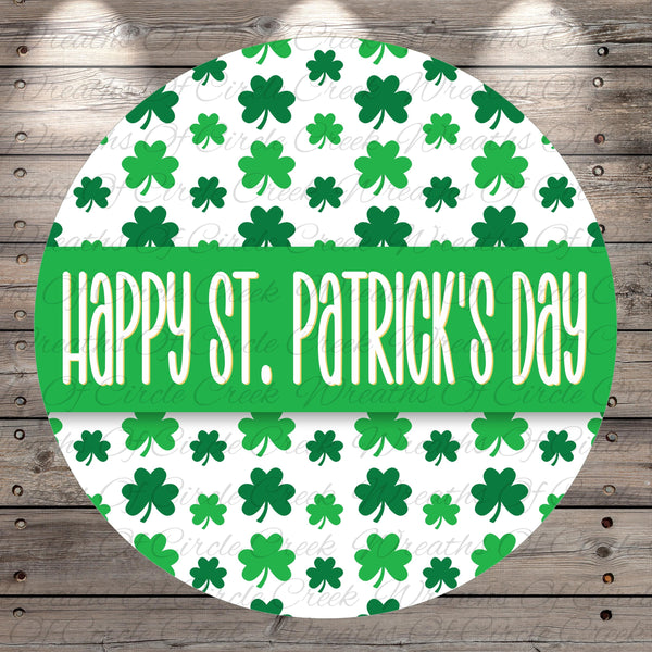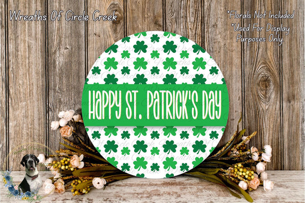 Happy St. Patrick’s Day Green Clover Aluminum Metal Wreath Sign (Lightweight, No Holes)