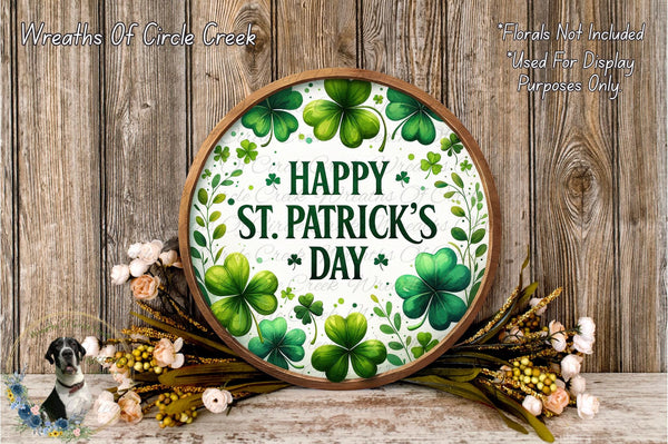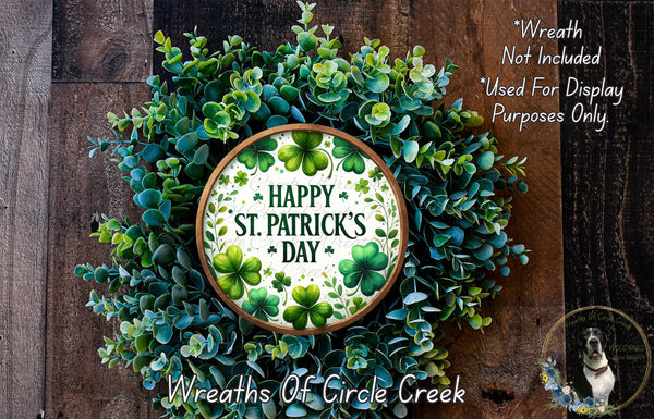 Happy St. Patrick’s Day | Shamrock Clover Decor | Lightweight Round Metal Wreath Sign | No Holes in Sign | Irish Green Door Sign
