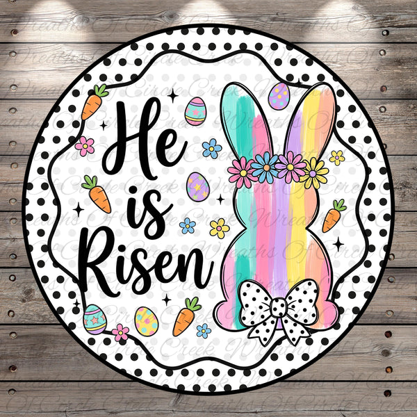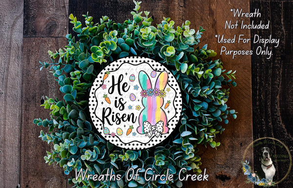 He Is Risen Easter Bunny Aluminum Metal Wreath Sign (Lightweight, No Holes)