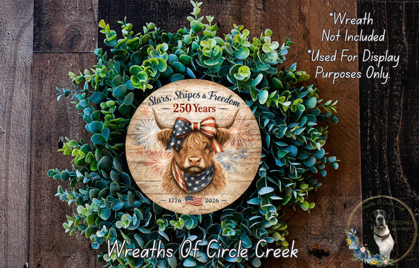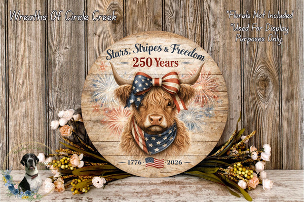 Highland Cow 250 Patriotic Stars Stripes Aluminum Metal Wreath Sign (Lightweight, No Holes)