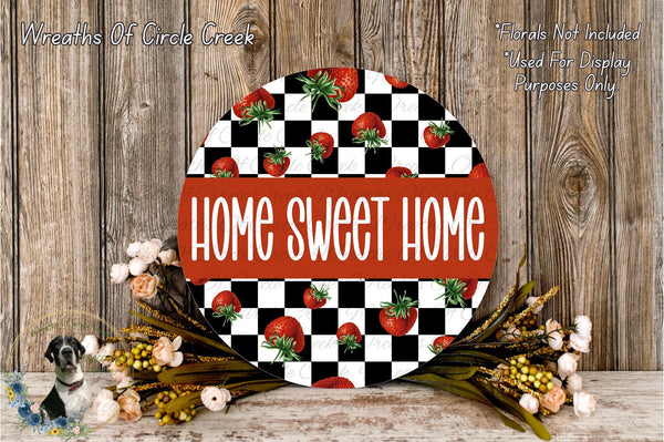Home Sweet Home Strawberry Checkered Aluminum Metal Wreath Sign (Lightweight, No Holes)