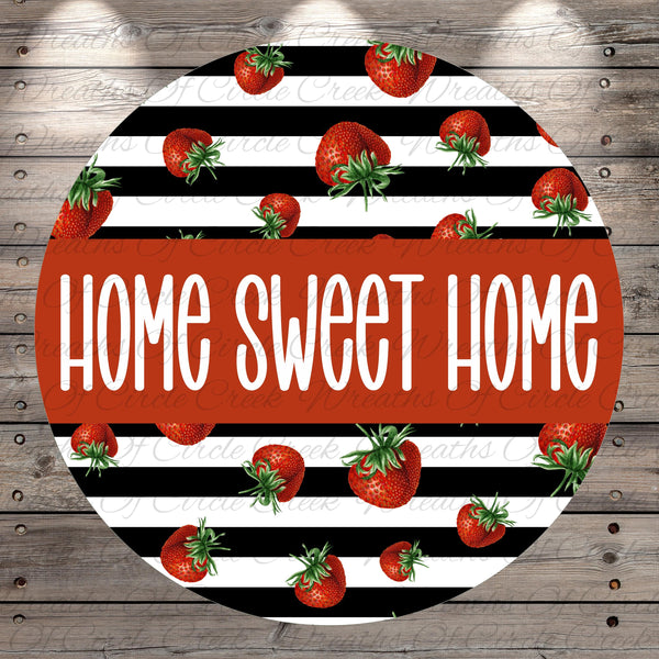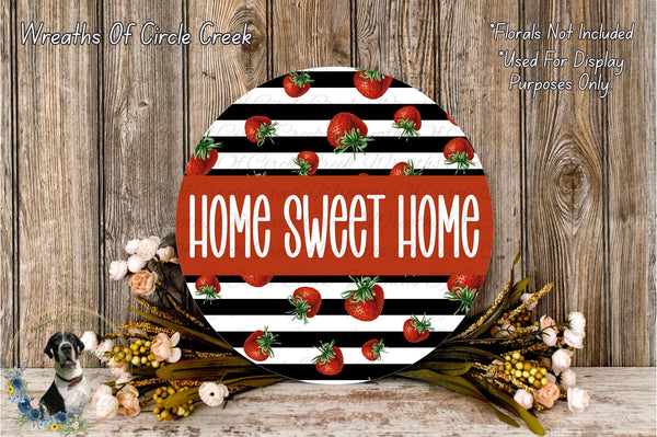 Home Sweet Home Strawberry Striped Aluminum Metal Wreath Sign (Lightweight, No Holes)