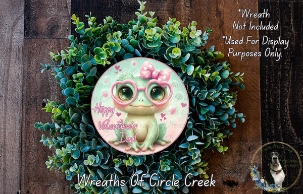 Hoppy Valentine’s Day Cute Frog Aluminum Metal Wreath Sign (Lightweight, No Holes)