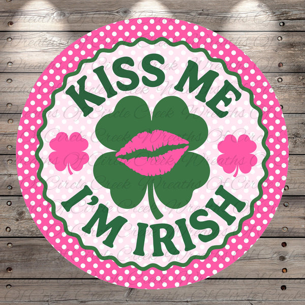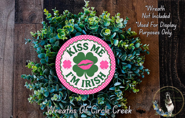 Kiss Me I’m Irish Pink Clover Aluminum Metal Wreath Sign (Lightweight, No Holes)