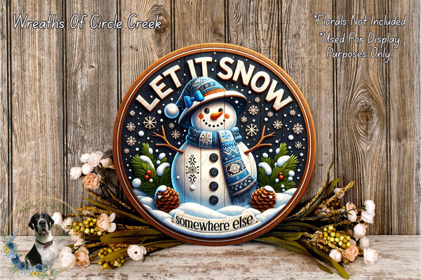 Let It Snow Somewhere Else | Funny Winter Snowman Decor | Lightweight Round Metal Wreath Sign | No Holes in Sign | Holiday Front Door Sign