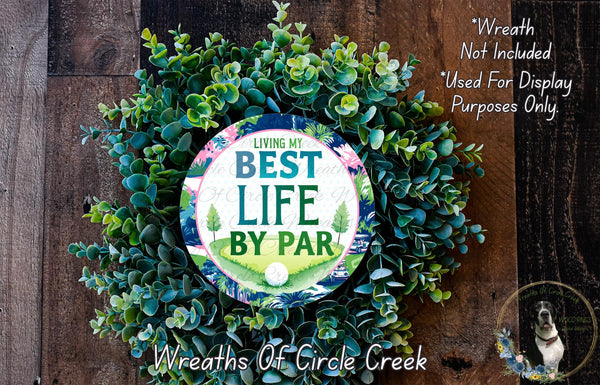Living My Best Life By Par Aluminum Metal Wreath Sign (Lightweight, No Holes)