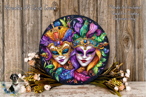 Mardi Gras Carnival Masks Aluminum Metal Wreath Sign (Lightweight, No Holes)