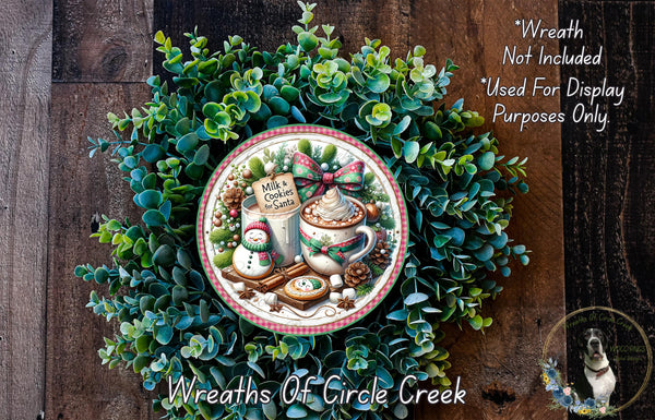 Milk and Cookies for Santa Sign | Christmas Cocoa Kitchen Decor | Lightweight Round Metal Wreath Sign | No Holes in Sign | Holiday Farmhouse