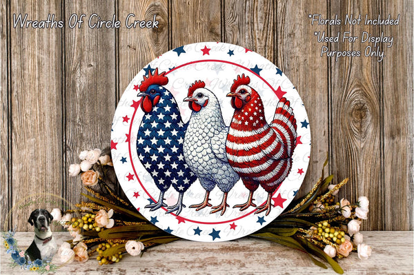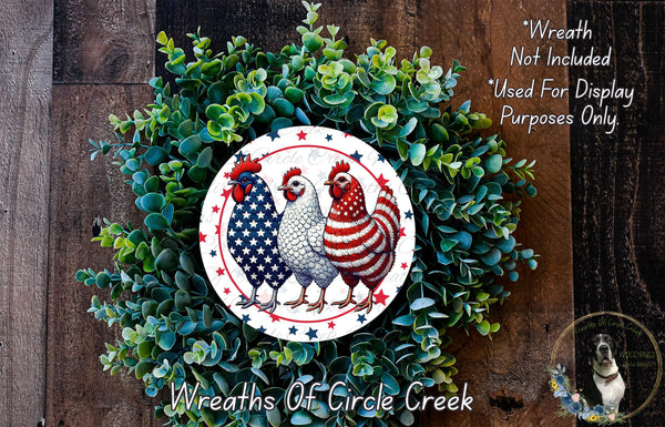 Patriotic Farmhouse Chickens Aluminum Metal Wreath Sign (Lightweight, No Holes)