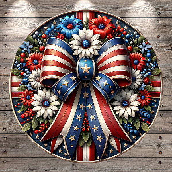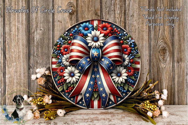 Patriotic Floral Bow Aluminum Metal Wreath Sign (Lightweight, No Holes)