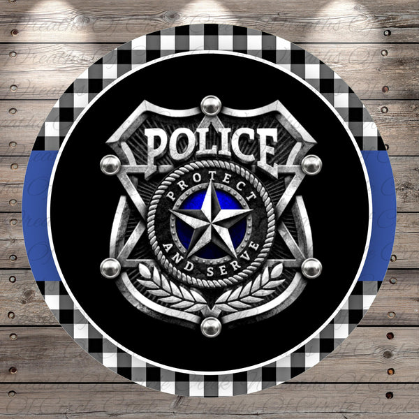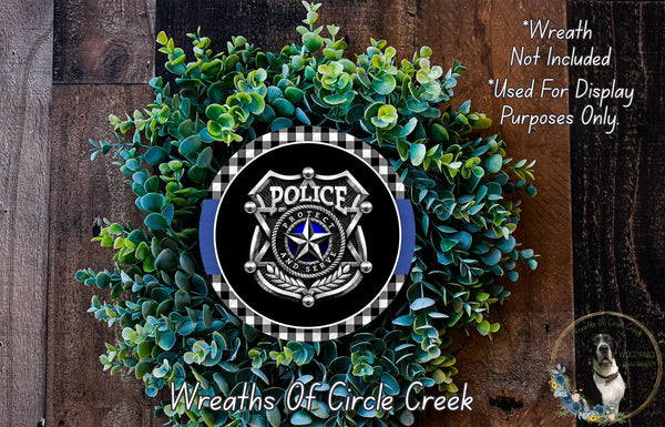 Police Protect and Serve Aluminum Metal Wreath Sign (Lightweight, No Holes)