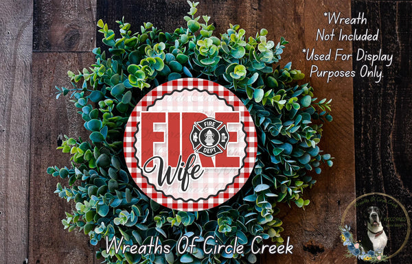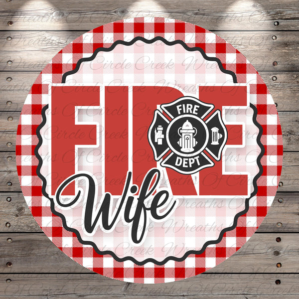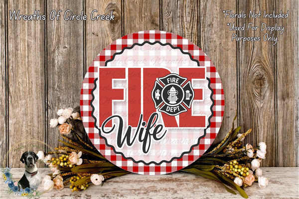 Proud Fire Wife Red Plaid Aluminum Metal Wreath Sign (Lightweight, No Holes)