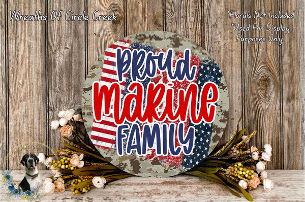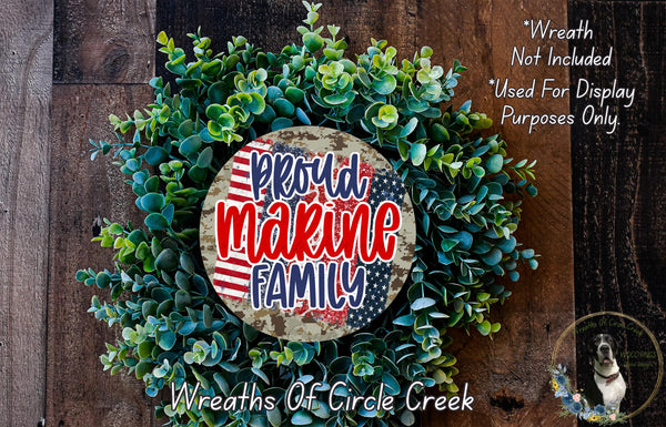 Proud Marine Family Patriotic Wreath Sign Military Home Decor Aluminum Metal Wreath Sign (Lightweight, No Holes)