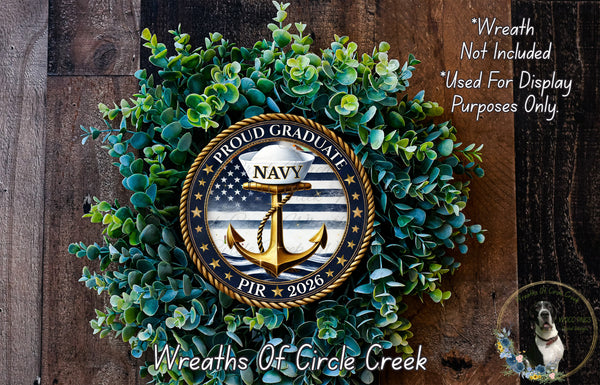 Proud Navy Graduate PIR 2026 Aluminum Metal Wreath Sign (Lightweight, No Holes)