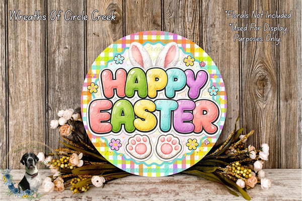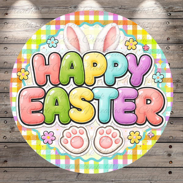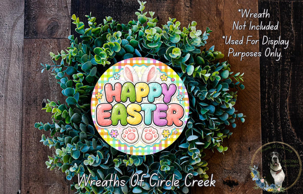 Rainbow Happy Easter Pastel Plaid Aluminum Metal Wreath Sign (Lightweight, No Holes)