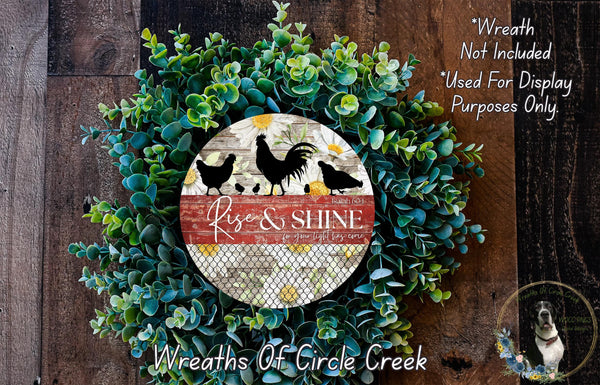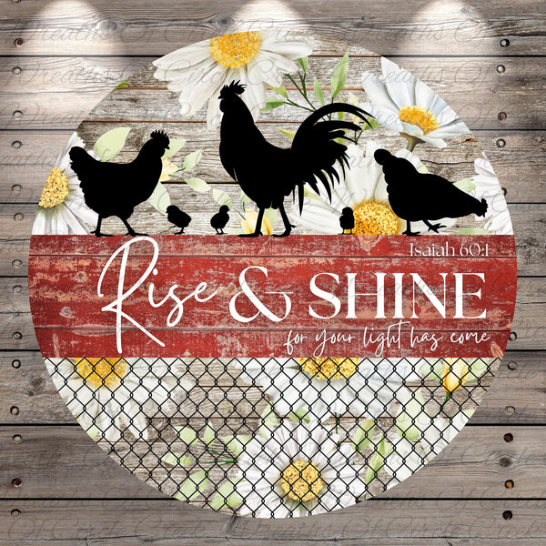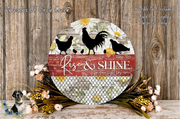 Rise and Shine Isaiah 60:1 Farmhouse Chicken Aluminum Metal Wreath Sign (Lightweight, No Holes)