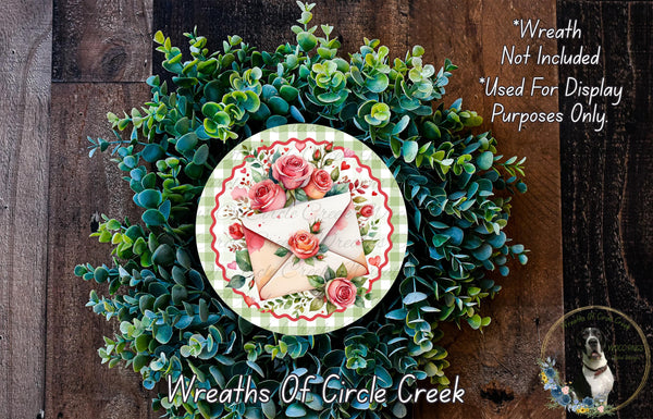 Rose Envelope Love Letter Sign | Lightweight Round Metal Wreath Sign | No Holes in Sign | Valentine & Spring Door Decor