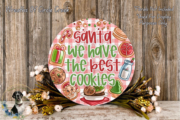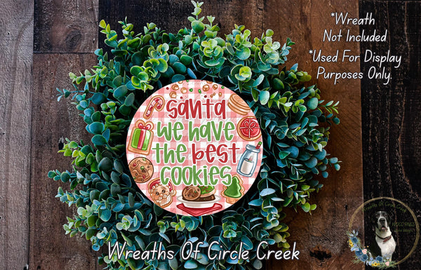 Santa We Have the Best Cookies Sign | Holiday Kitchen Decor | Lightweight Round Metal Wreath Sign | No Holes | Christmas Cookie Sign