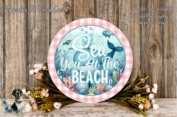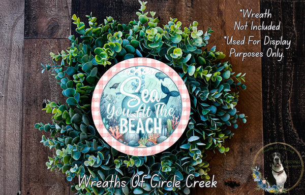 Sea You at the Beach | Coastal Ocean Decor | Lightweight Round Metal Wreath Sign | No Holes in Sign