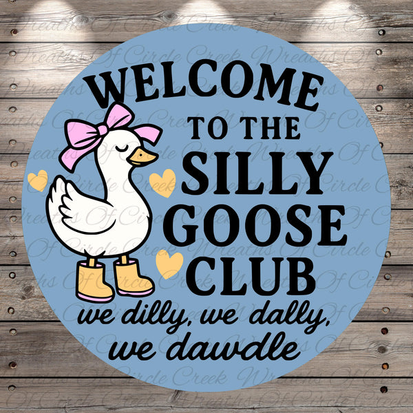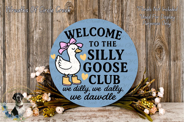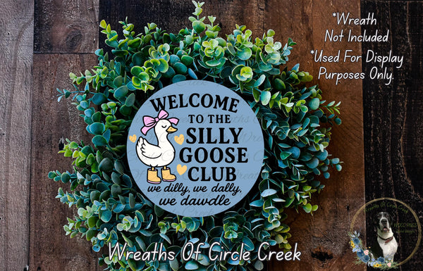Silly Goose Club Aluminum Metal Wreath Sign (Lightweight, No Holes)