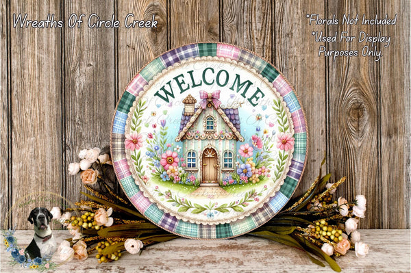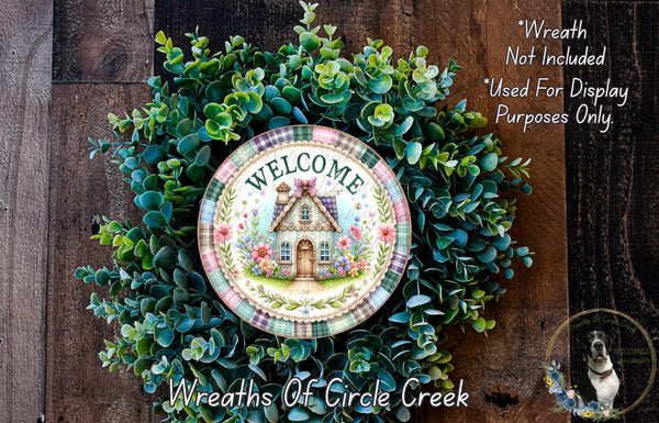 Spring Cottage Welcome Aluminum Metal Wreath Sign (Lightweight, No Holes
