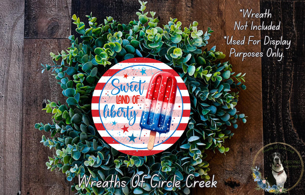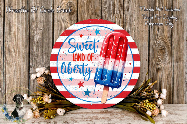 Sweet Land of Liberty Popsicle Patriotic Aluminum Metal Wreath Sign (Lightweight, No Holes)