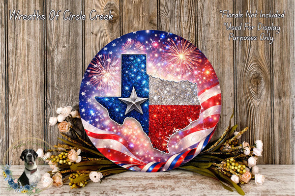 Texas Flag Glitter Fireworks Patriotic Aluminum Metal Wreath Sign (Lightweight, No Holes)