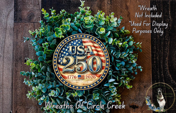 USA 250 Vintage Patriotic Aluminum Metal Wreath Sign (Lightweight, No Holes)