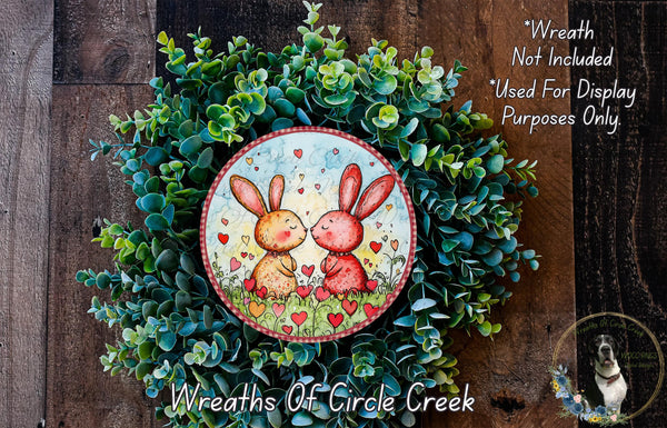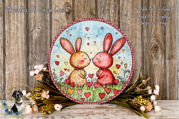 Valentine Bunny Couple Sign | Lightweight Round Metal Wreath Sign | No Holes in Sign | Cute Valentine Decor