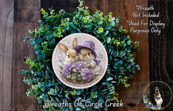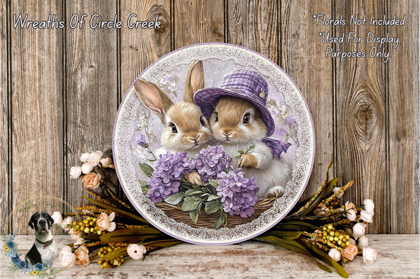 Victorian Purple Bunnies Aluminum Metal Wreath Sign (Lightweight, No Holes)