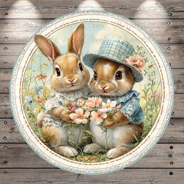 Victorian Spring Bunnies Aluminum Metal Wreath Sign (Lightweight, No Holes)