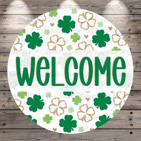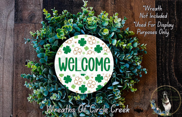 Welcome Shamrock Clover Aluminum Metal Wreath Sign (Lightweight, No Holes)