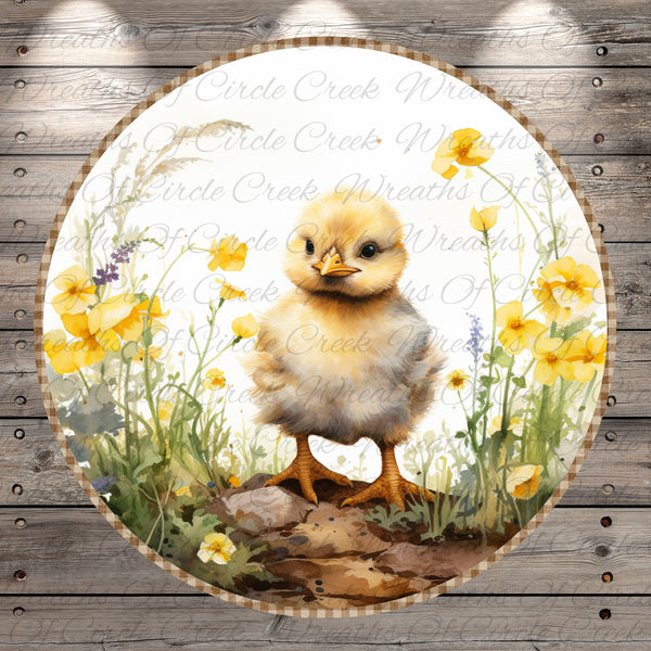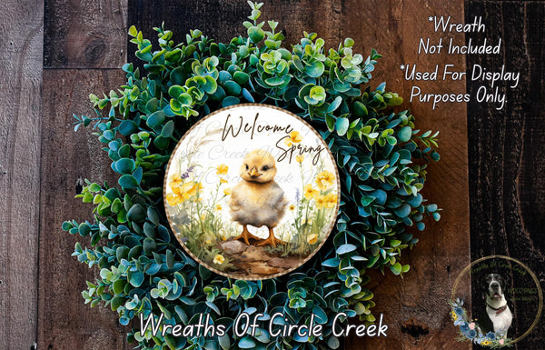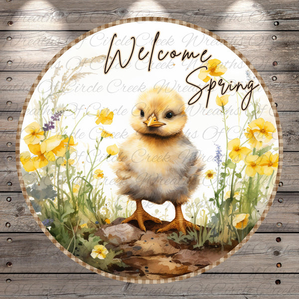Welcome Spring Chick Floral Aluminum Metal Wreath Sign (Lightweight, No Holes)