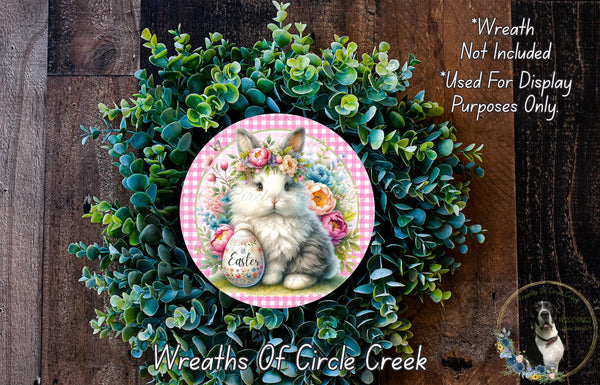 Whimsical Easter Bunny Floral | Lightweight Round Metal Wreath Sign | No Holes in Sign | Spring Bunny Decor