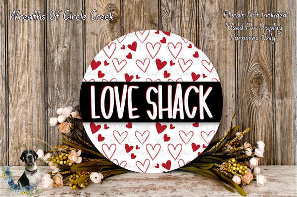 White Love Shack Aluminum Metal Wreath Sign (Lightweight, No Holes)